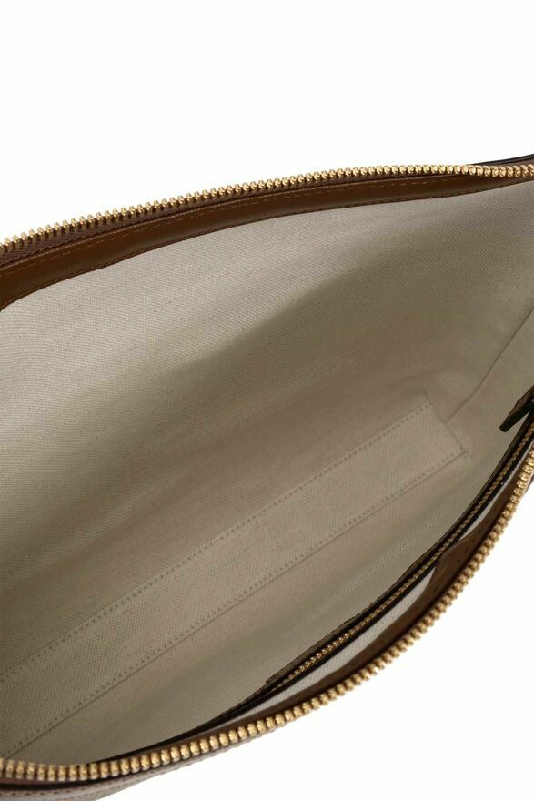 Regulowany i odpinany pasek pozwala na indywidualne dostosowanie torby do potrzeb i preferencji użytkownika, oferując możliwość noszenia jej na ramieniu lub jako eleganckie etui. Wnętrze, wykończone w jasnym odcieniu, zostało zaprojektowane z myślą o minimalizmie i funkcjonalności, zawierając jednokomorową przestrzeń z dodatkową kieszenią zamykaną na zamek, co umożliwia bezpieczne przechowywanie wartościowych przedmiotów.