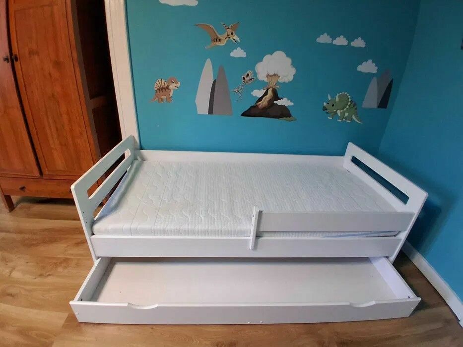 Wygodny tapczanik w kolorze białym plus drewniany stelaż, o wymiarze 160x80 plus materac HEVEA SNUDO MAX.Zapraszam do kontaktu.