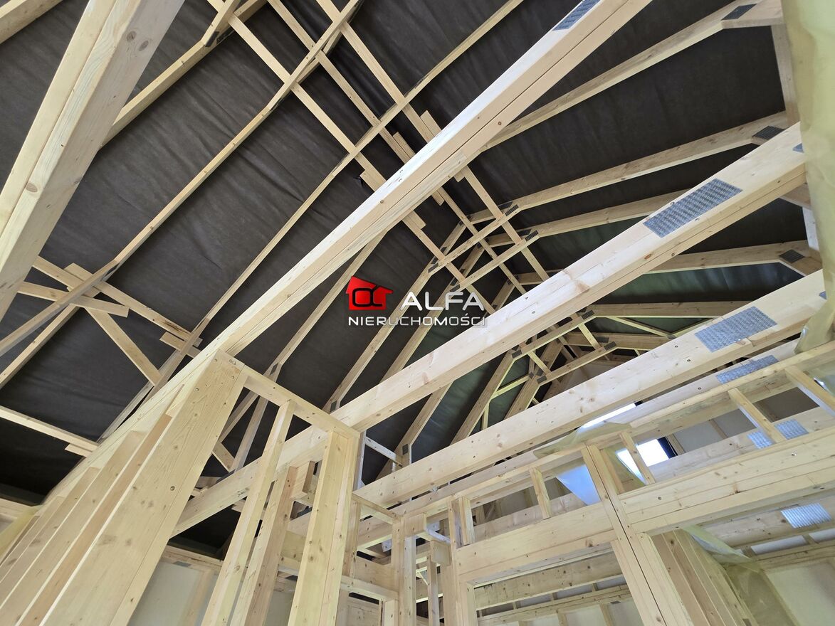 Stan deweloperski:ocieplenie ścian zewnętrznych, ściany wewnętrzne, okna 3-szybowe, drzwi zewnętrzne, instalacje: elektryczna, wodno - kanalizacyjna oraz grzewcza: na parterze ogrzewanie podłogowe, na poddaszu tradycyjne, podwieszane sufity, wygłuszenie stropu wełną, docieplenie poddasza, zabudowa poddasza płytami, schody wewnętrzne.