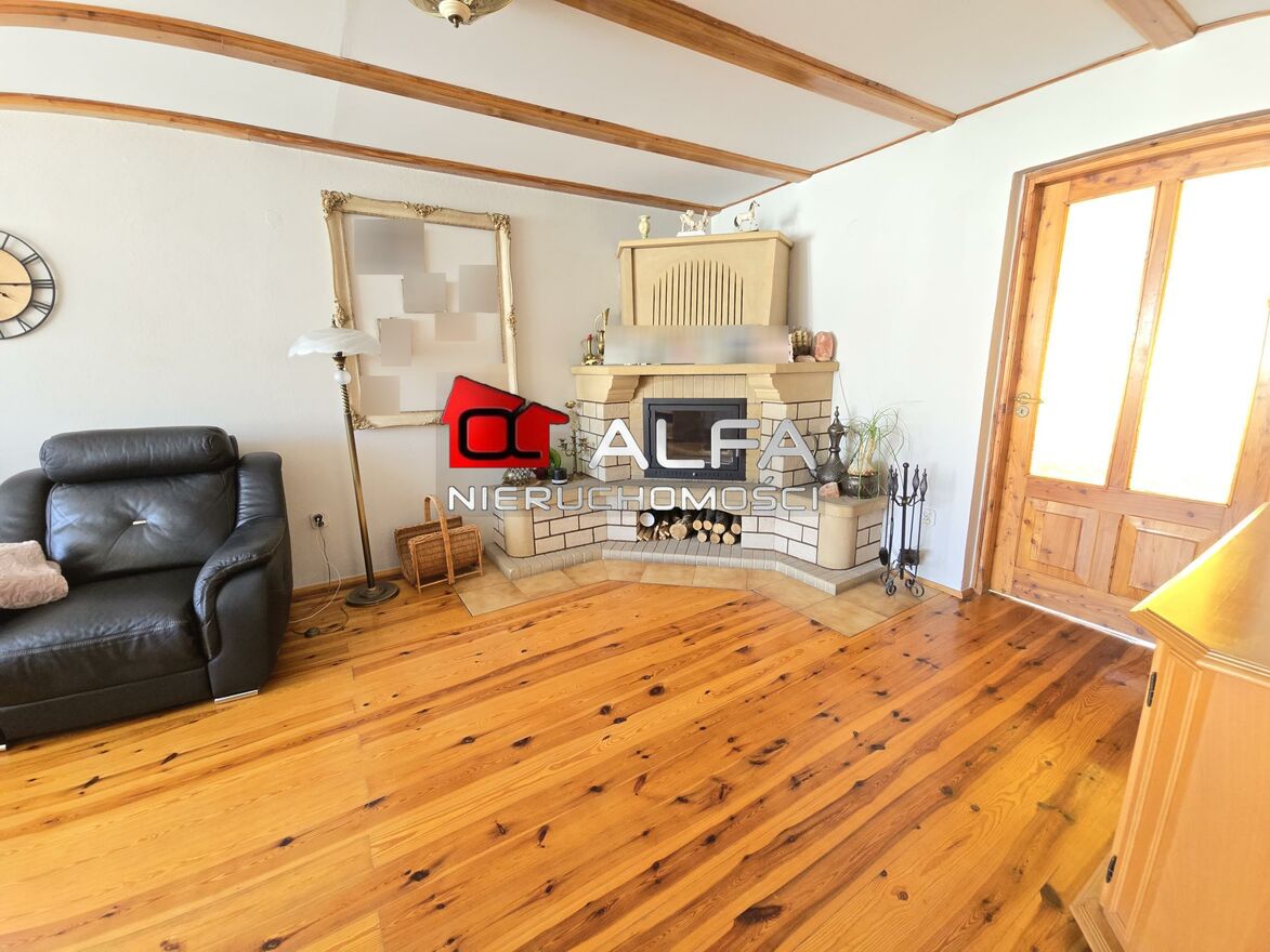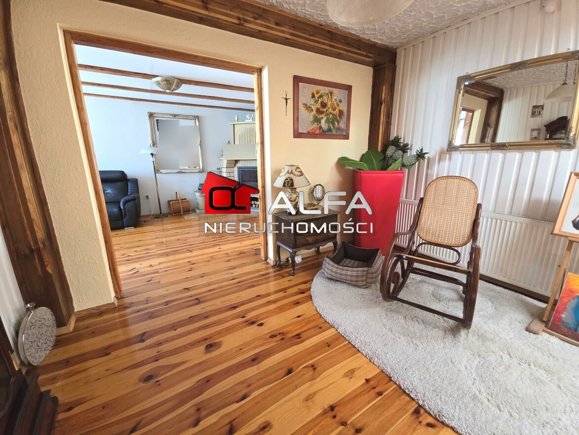 W domu są okna PCV wyposażone w rolety zewnętrzne, na podłogach dębowe deski, drewniane drzwi wewnętrzne, drzwi zewnętrzne nowego typu, oświetlenie ledowe, nowe instalacje.