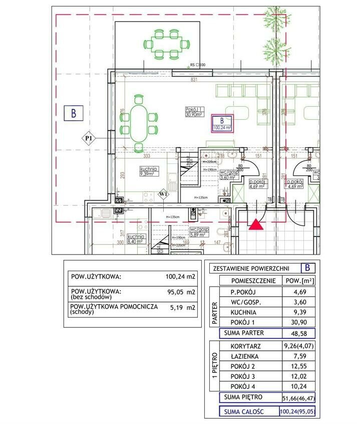 Oferta dotyczy domu w stanie deweloperskim o powierzchni 100,24 m2.