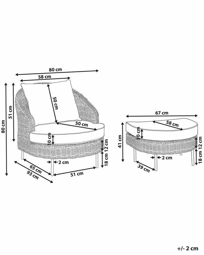 Krzesło do ogrodu z podnóżkiemPrzekształć swój ogród w miejsce relaksu i odpoczynku korzystając z tego fotela oraz podnóżka. Oba produkty wykonane zostały z wysokiej jakości technorattanu, dzięki czemu są odporne na promieniowanie UV - nie musisz się zatem martwić, że ich naturalny kolor wyblaknie. Oprócz tego, krzesło oraz podnóżek posiadają poliestrowe poduchy siedziskowe, zwiększające komfort użytkowania. Co więcej, stołek może być też ustawiony obok krzesła i po zdjęciu poduszki wykorzystany jako poręczny stolik.