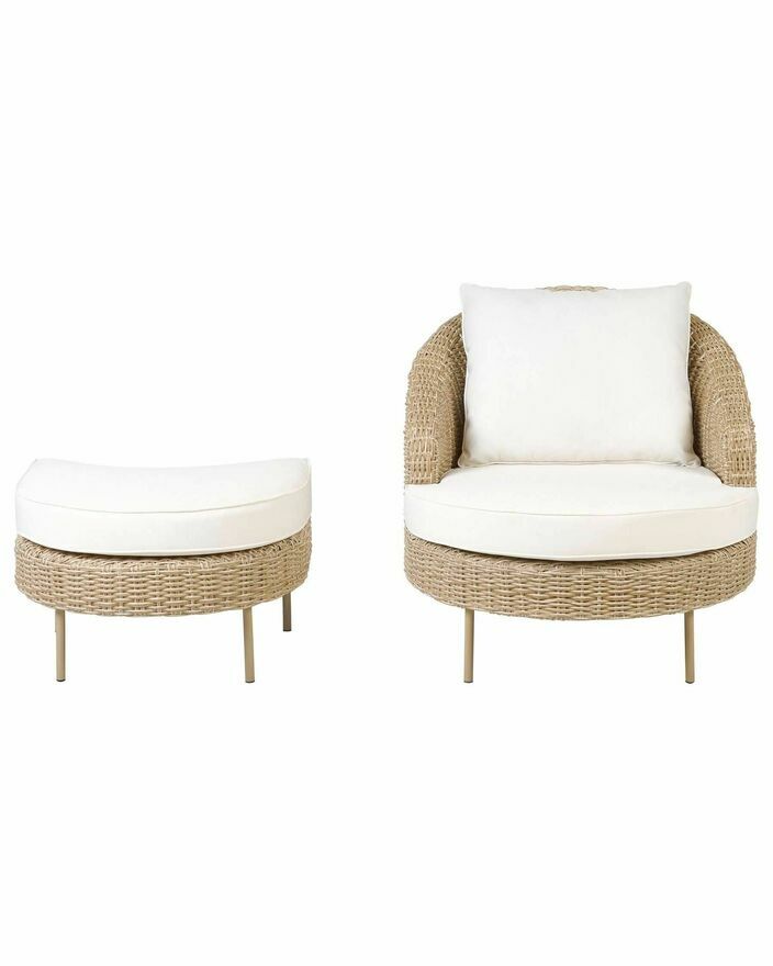 Fotel ogrodowy z technorattanu z podnóżkiem naturalny ARCILLE_868863