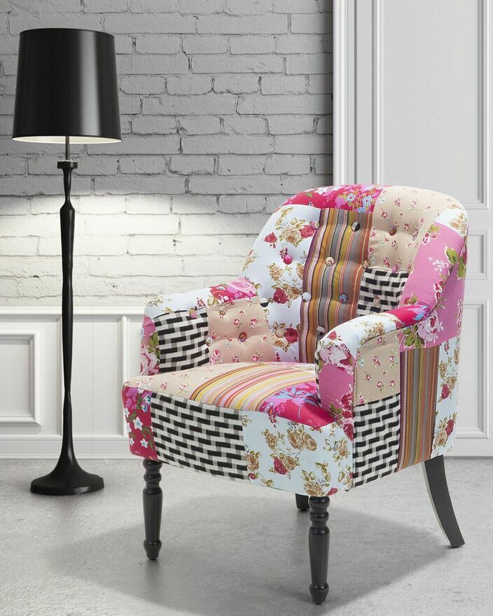 Kolorowy fotel patchworkowyJeżeli szukasz odważnego akcentu, który pozwoli ci przełamać wystrój twojego pomieszczenia, to ten fotel jest idealny. Żywe kolory, połączone z różnorodnością stylu patchwork, tworzą spójną kompozycję z nutą szaleństwa. Wykonanie z wytrzymałego, łatwego w utrzymaniu w czystości materiału, gwarantuje doskonały wygląd na długi czas.