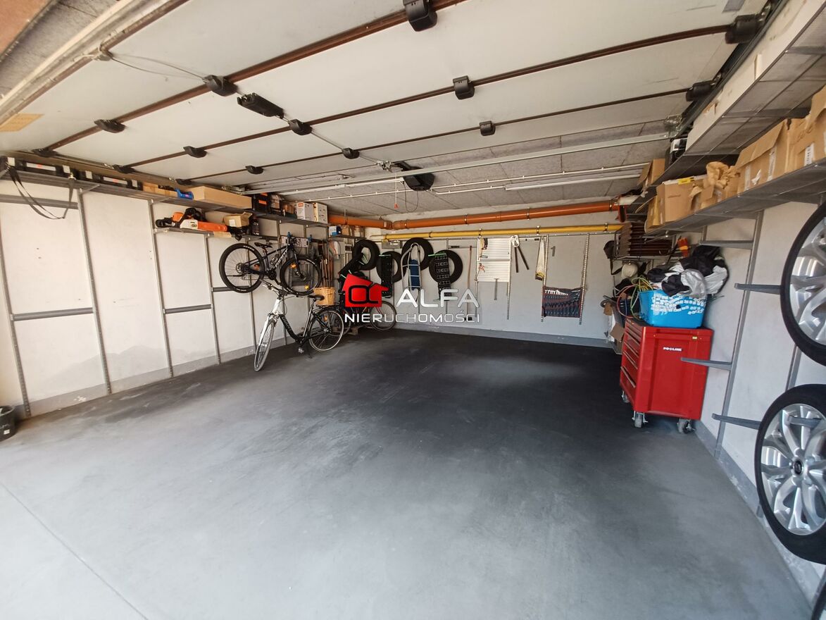 Wyposażony w system półek. Dodatkowo zamontowana jest brama na pilota. Nieruchomość w bardzo dobrym stanie!