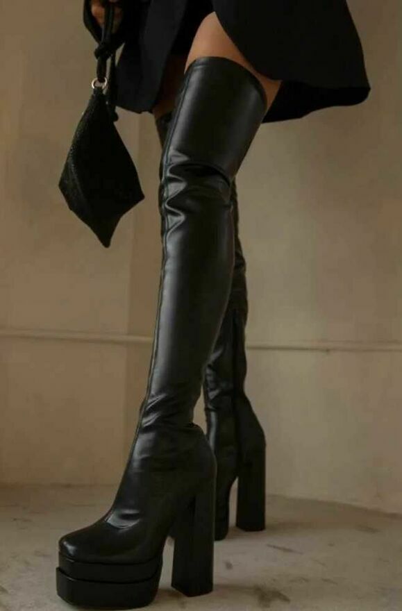 Kozaki na wysokim koturniemateriał: PU