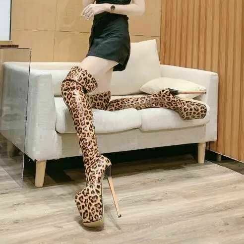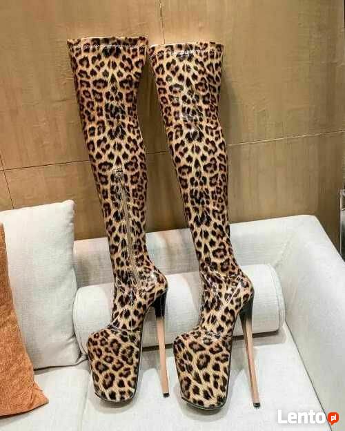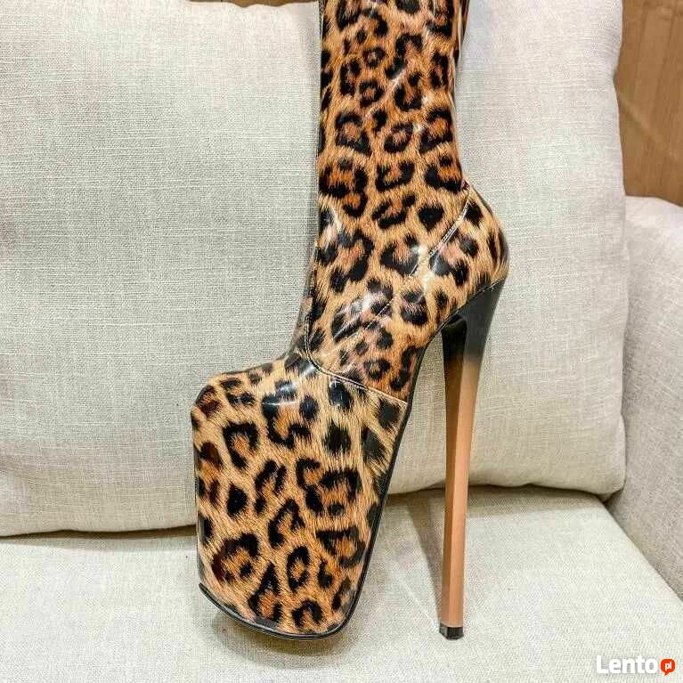 Kozaki na wysokim obcasie 19 cm panterkamateriał: PU