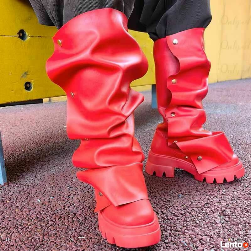 Kozaki wysoka platforma Kolorykolory- czarny, złoty biała platforma, ciemno szary, moro wojskowy jasny, moro wojskowy ciemny czerwony, różowy, niebieski z białą platformą, niebieskie, zielony, złoty, pomarańczowy, złoty, srebrny, biały