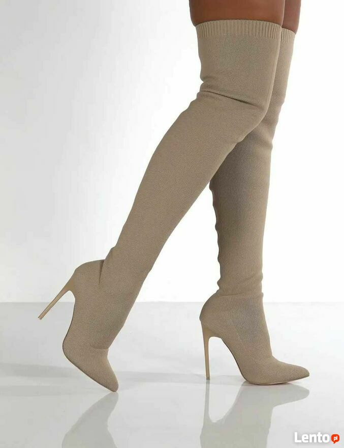 Kozaki z dzianiny w 2 kolorach bezowe czarnemateriał: Microfiber