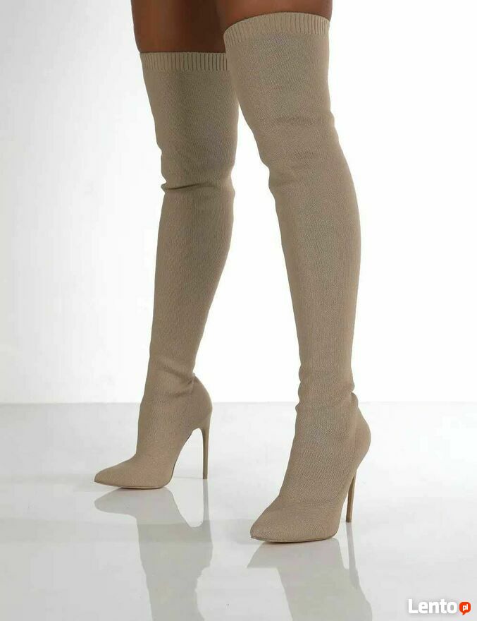 Kozaki z dzianiny w 2 kolorach bezowe czarne