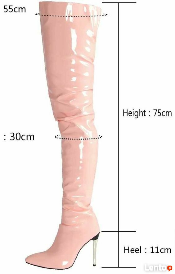 Kozaki za kolano dostępne w kolorach.czarny połysk, czerwony połysk, biały połysk, różowy połysk, fioletowy połysk, niebieski ciemny połysk