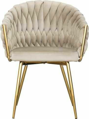 Komfortowy fotel Marbella ze złotym stelażem to idealne połączenie funkcjonalności i elegancji. Wygodne siedzisko zapewnia doskonały komfort, a luksusowy złoty stelaż dodaje wnętrzu nowoczesnego blasku. Fotel Marbella doskonale komponuje się zarówno w jadalni, jak i kuchni, wprowadzając stylowy akcent do przestrzeni. Jego elegancki wygląd i komfort sprawiają, że jest doskonałym wyborem do każdego wnętrza, gdzie funkcjonalność łączy się z estetyką.Szerokość 63 cm