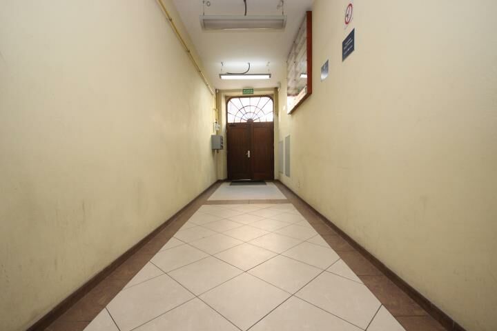 Toaleta na korytarzu na tym samym piętrze. Na podłogach panele, na ścianach gładzie. Świetna lokalizacja! Czynsz najmu wynosi 1500 zł netto.