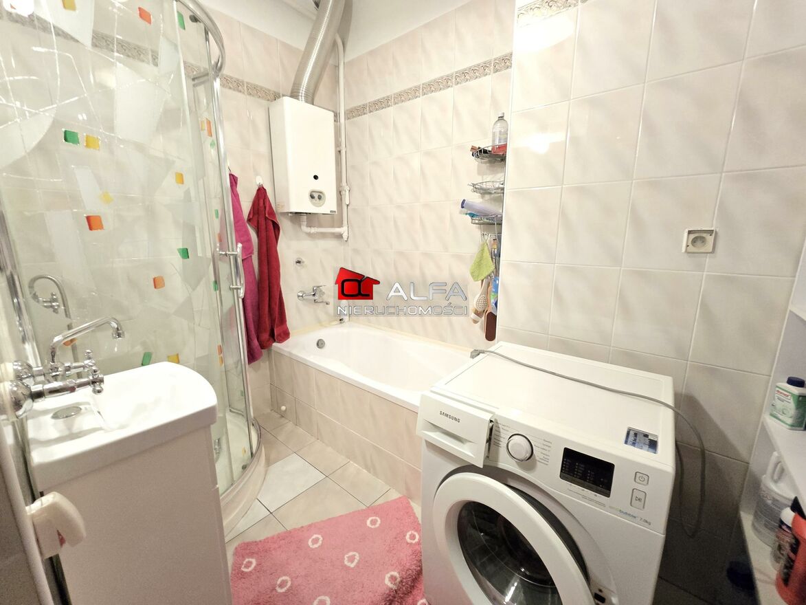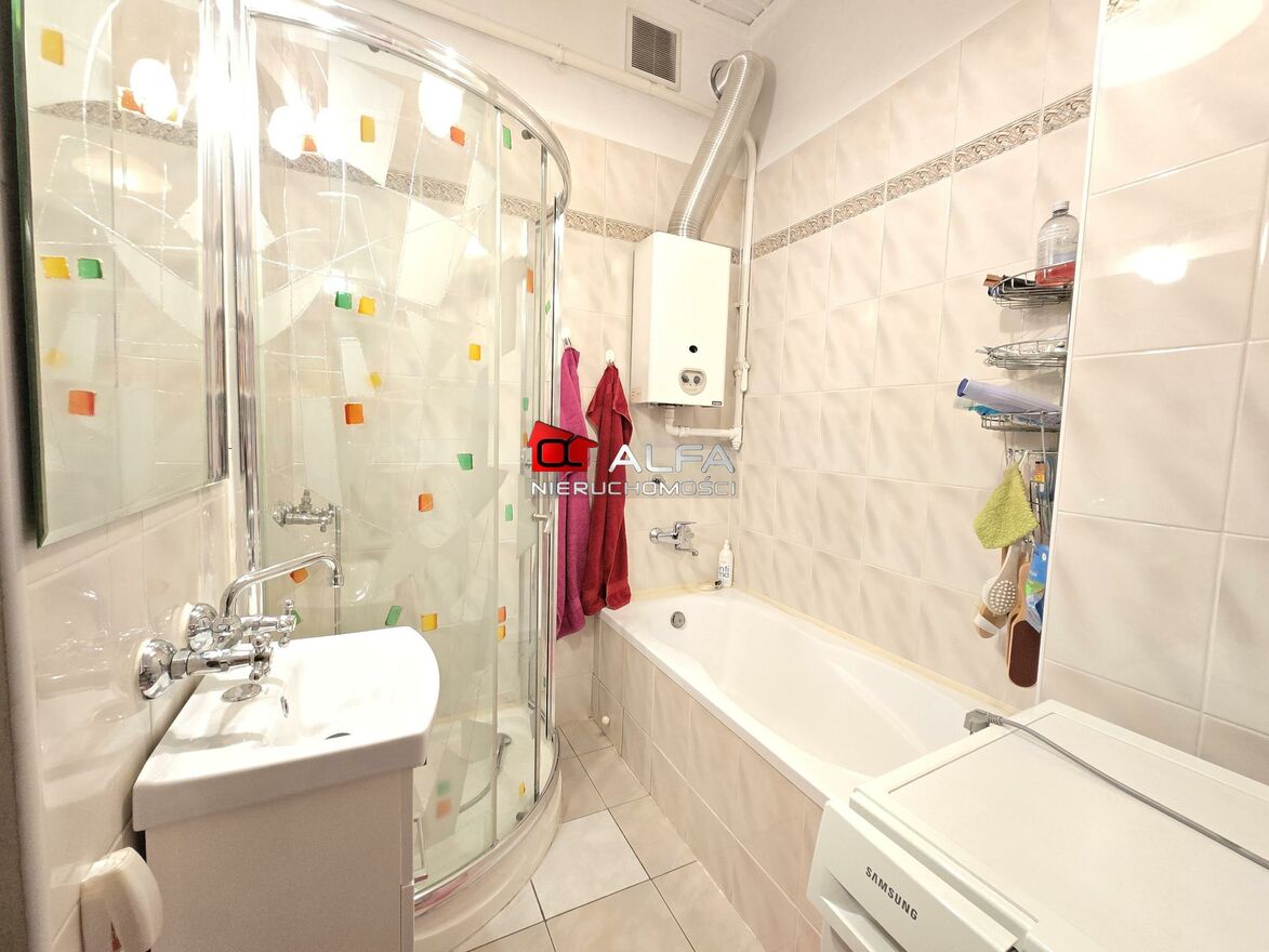 Ogrzewanie w mieszkaniu jest miejskie. Woda podgrzewana ogrzewaczem gazowym.