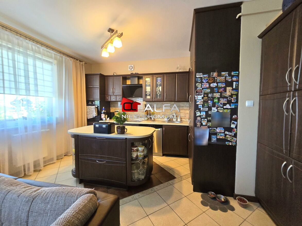 W cenie mieszkania pozostaje umeblowana i wyposażona w sprzęt AGD kuchnia oraz salon.