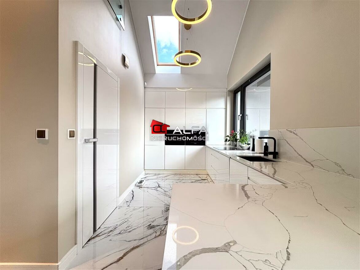 Całość wykończona została w standardzie premium, nadając wnętrzom ponadczasowej elegancji. Wszystkie zabudowy i meble zostały wykonane na indywidualne zamówienie, co zapewnia spójność stylistyczną i maksymalne wykorzystanie przestrzeni.