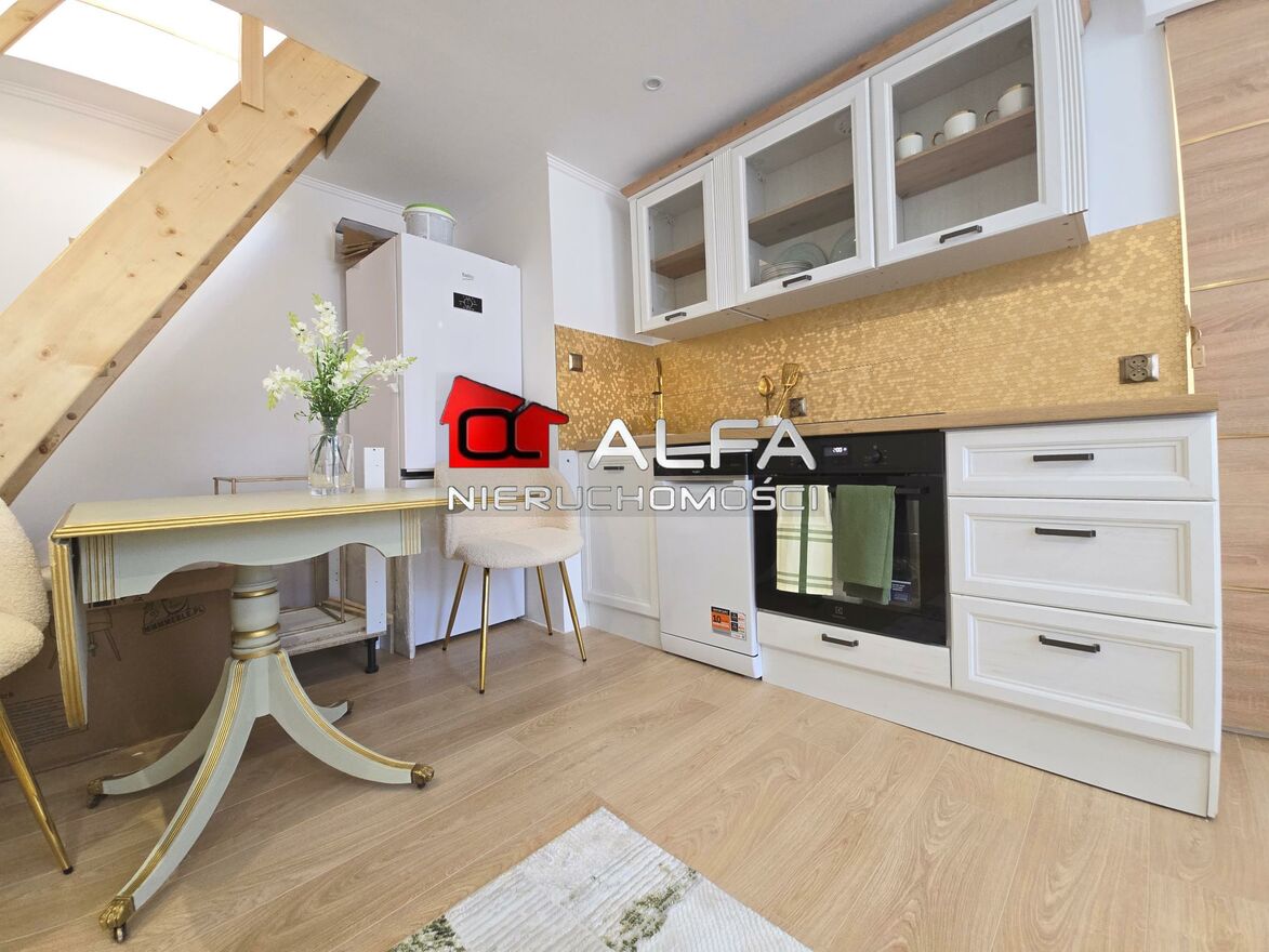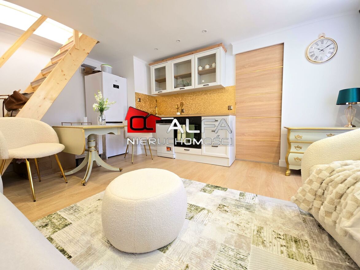 Klimatyczne mieszkanie 2-poziomowe położone przy parku!Na powierzchnię mieszkania składa się salon z aneksem kuchennym oraz duża łazienka, dodatkowo na poddaszu jest sypialnia.
