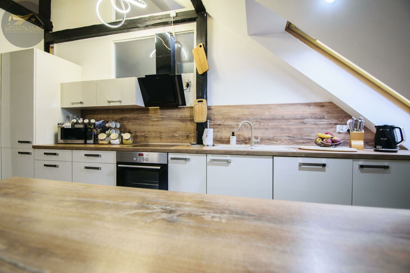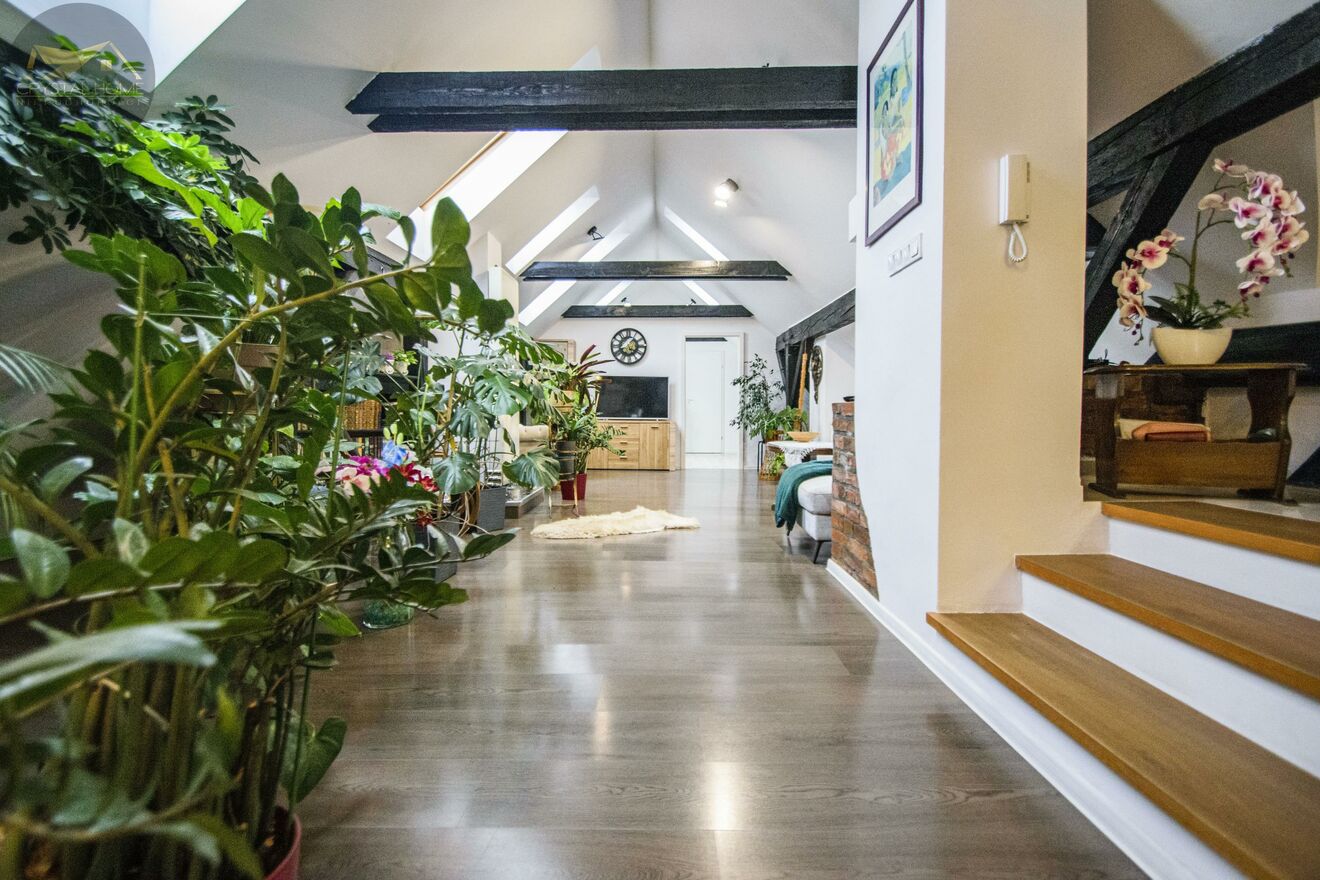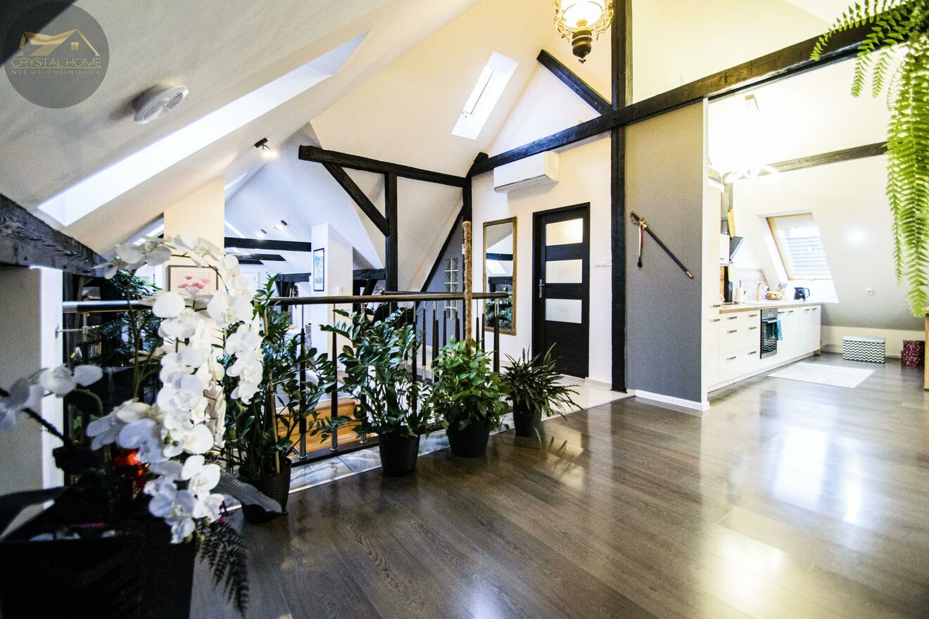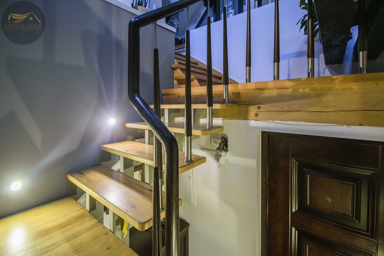 Wejście do mieszkania z 2. piętra, po kilku schodach witasz się z dużą, otwartą przestrzenią, która zachwyca od pierwszego kroku.