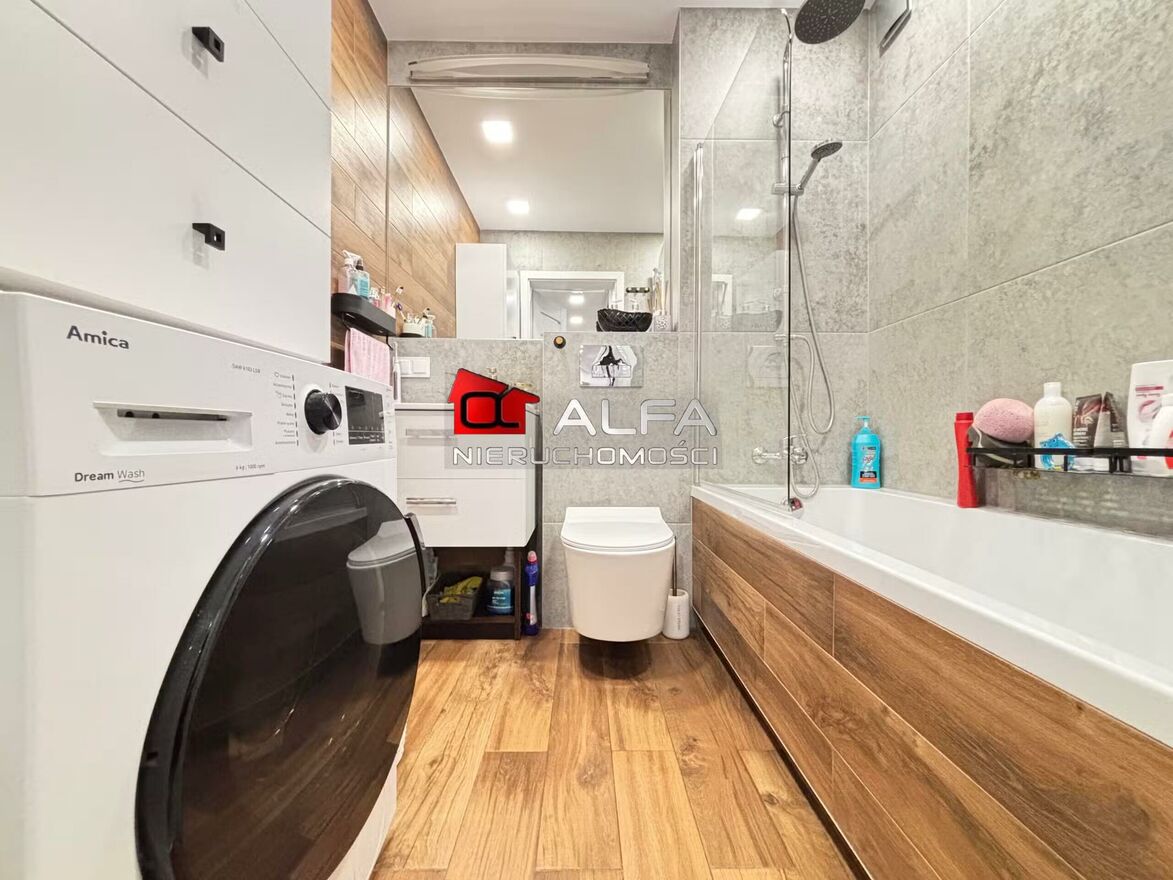 W cenie mieszkania pozostają meble kuchenne na wymiar ze sprzętem AGD w zabudowie: lodówko - zamrażarka, piekarnik, płyta indukcyjna, zmywarka i okap, w przedpokoju pojemna szafa na wymiar, w sypialni również duża szafa, szafka na wymiar oraz łóżko, w łazience pralka wraz z zabudowaną szafką. Meble w salonie pozostają kwestią do omówienia.