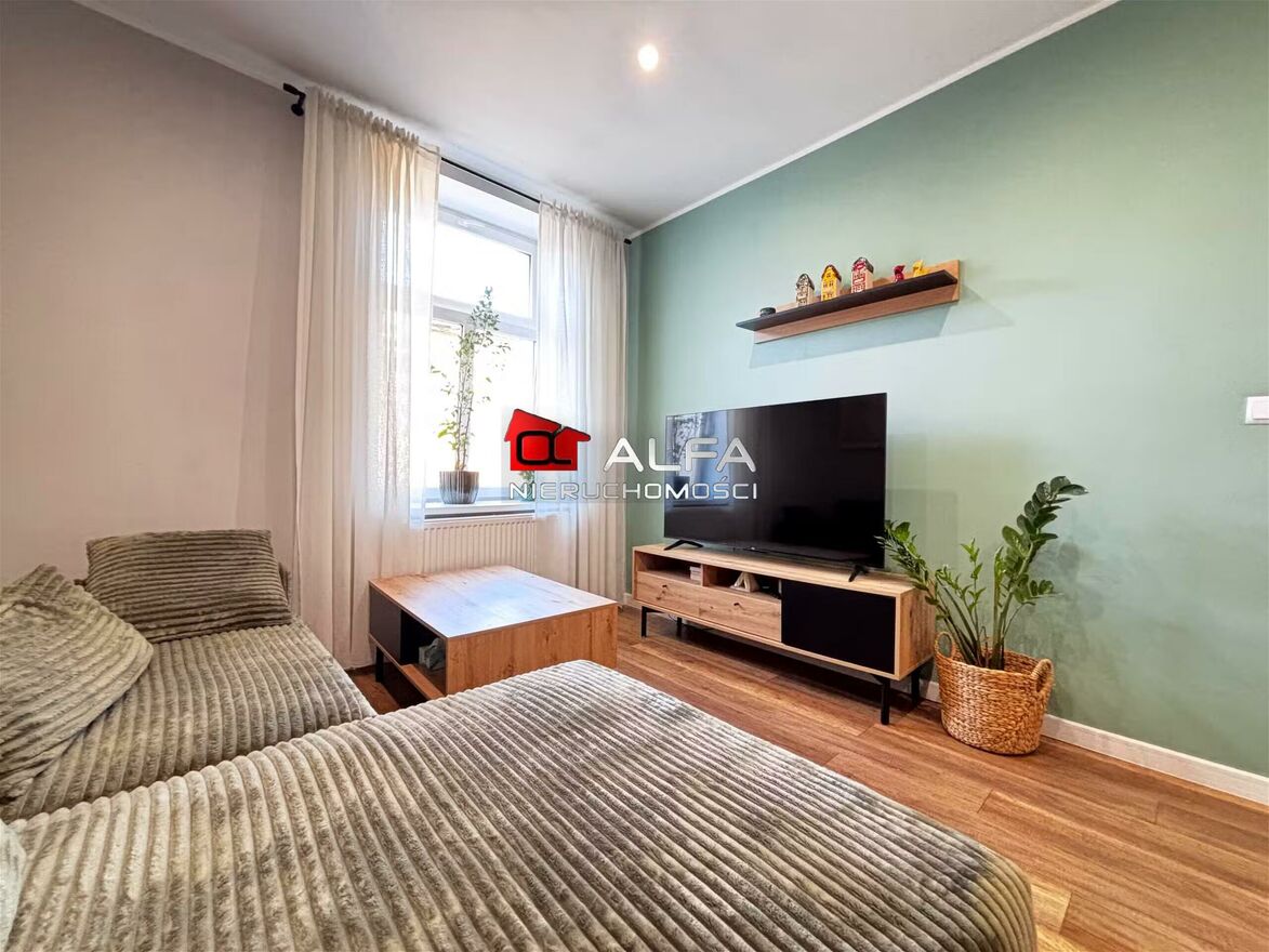 W cenie mieszkania pozostaje całe podstawowe umeblowanie i wyposażenie widoczne na zdjęciach, bez dodatkowych sprzętów AGD (tj. telewizor w salonie, drobne AGD w kuchni).