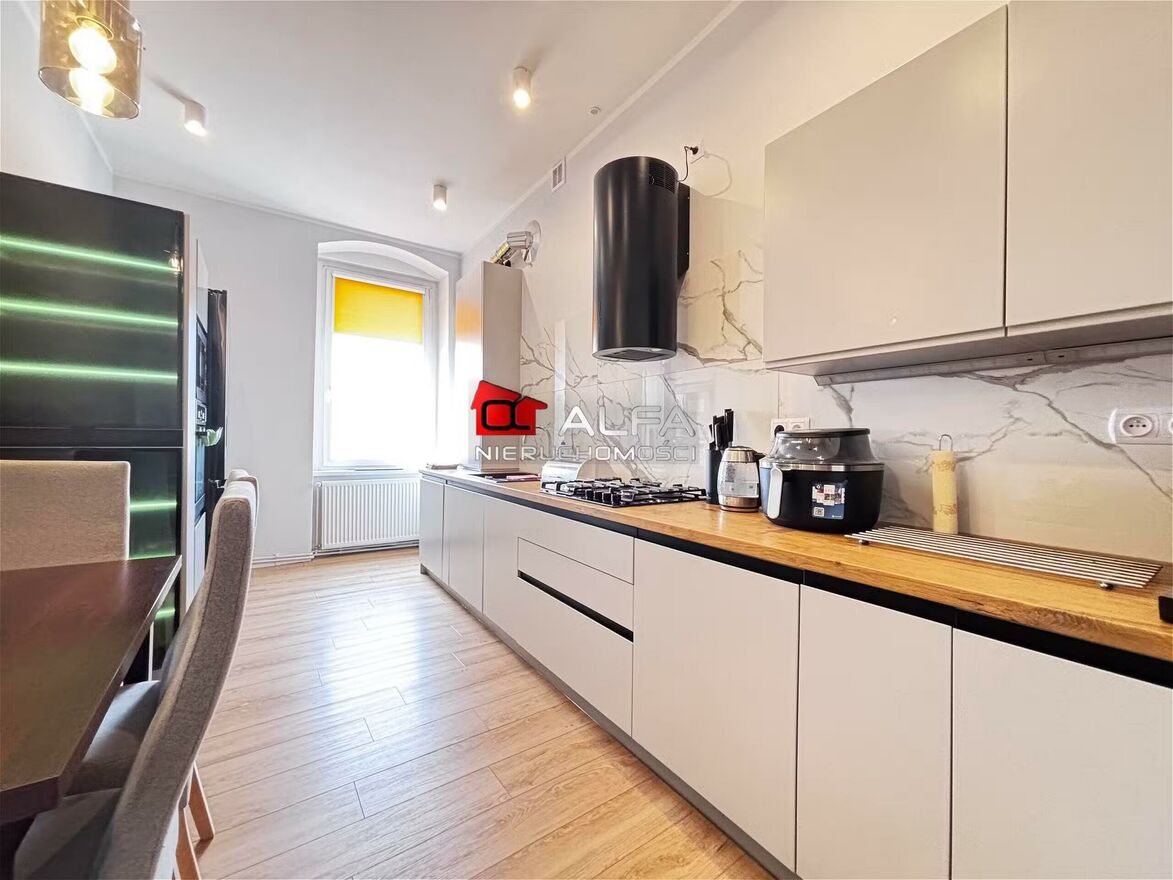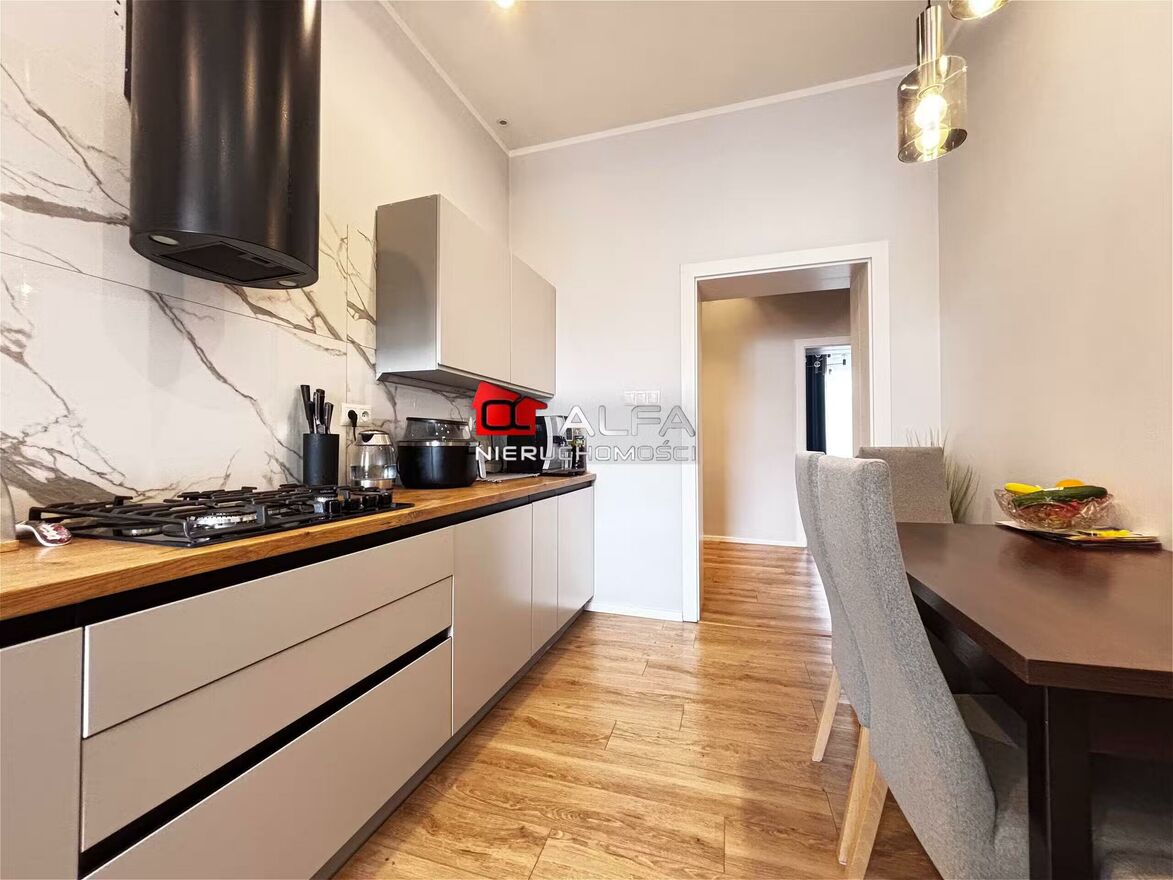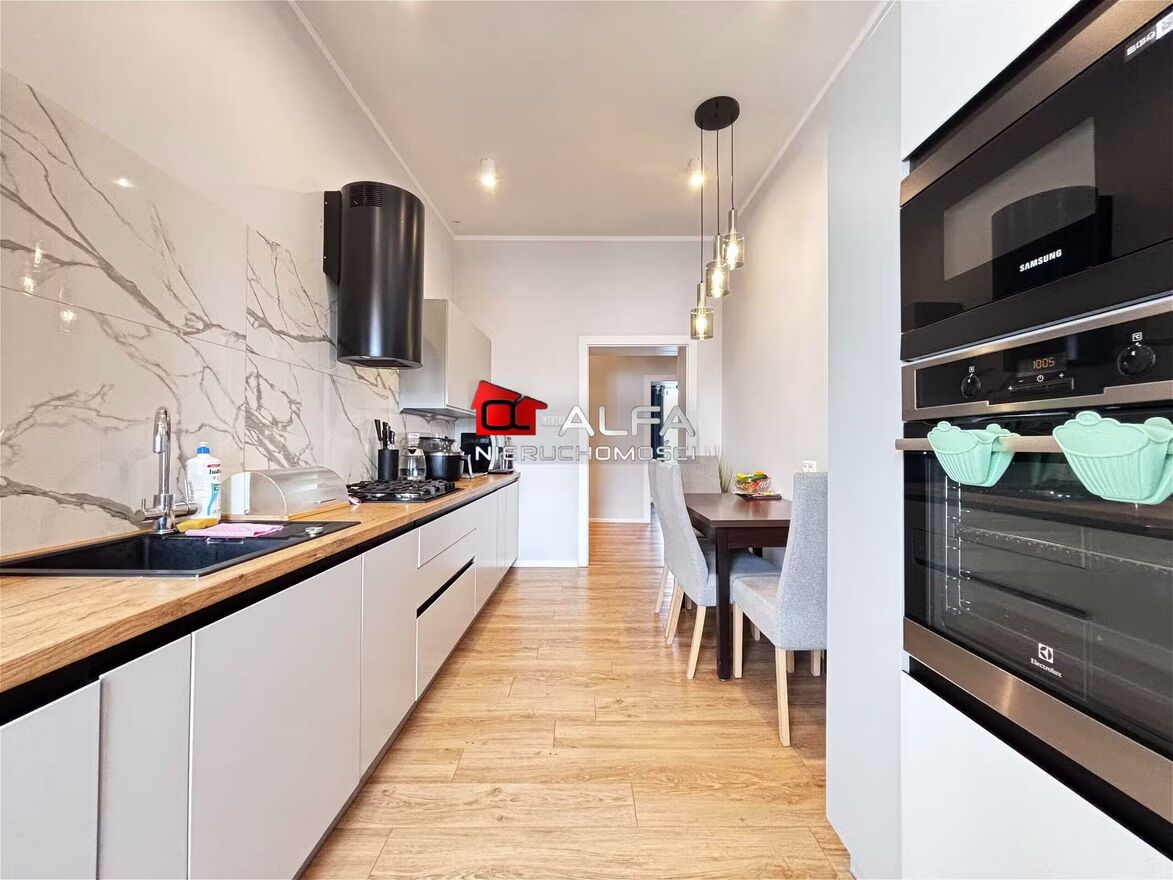 Nowa stolarka drzwiowa, ościeżnice na wymiar. Wysokiej klasy meble kuchenne tworzą wyjątkowy klimat luksusu w kamienicy.