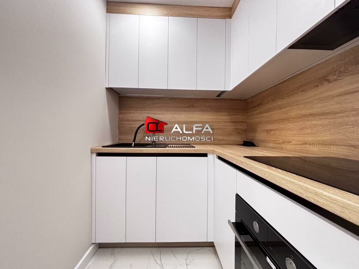 Mieszkanie wyposażone w meble kuchenne pod zabudowę wraz ze sprzętem AGD: lodówko-zamrażarką, zmywarką, płytą indukcyjną, piekarnikiem elektrycznym.