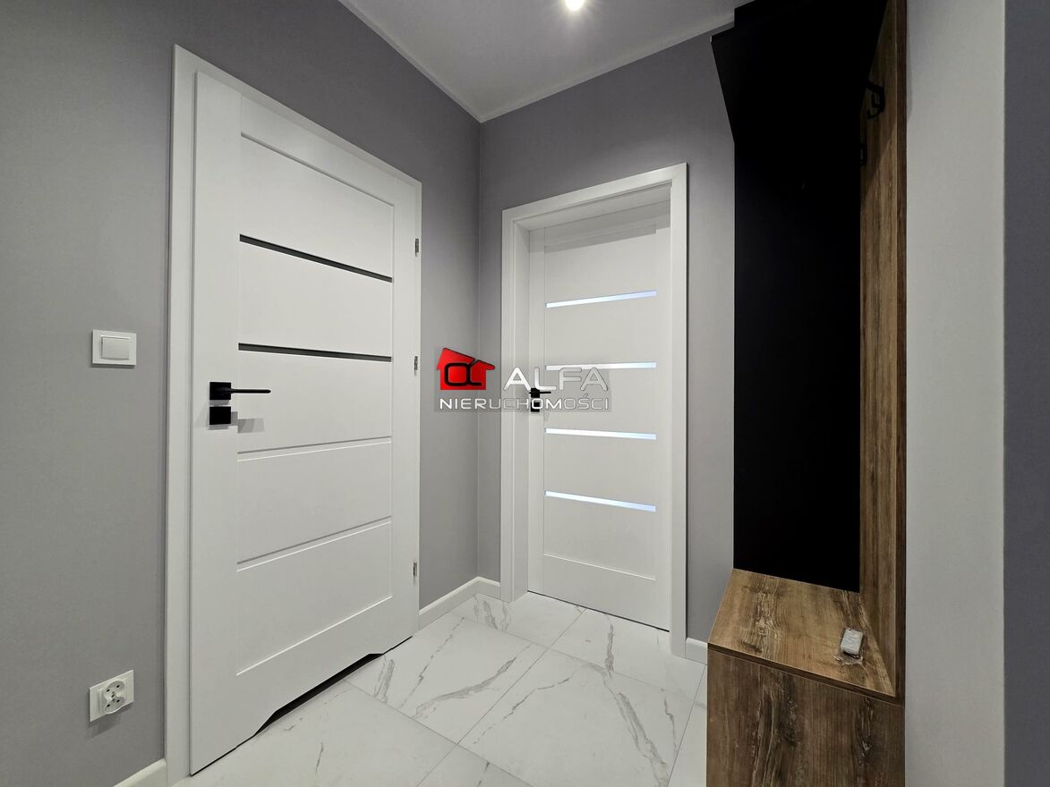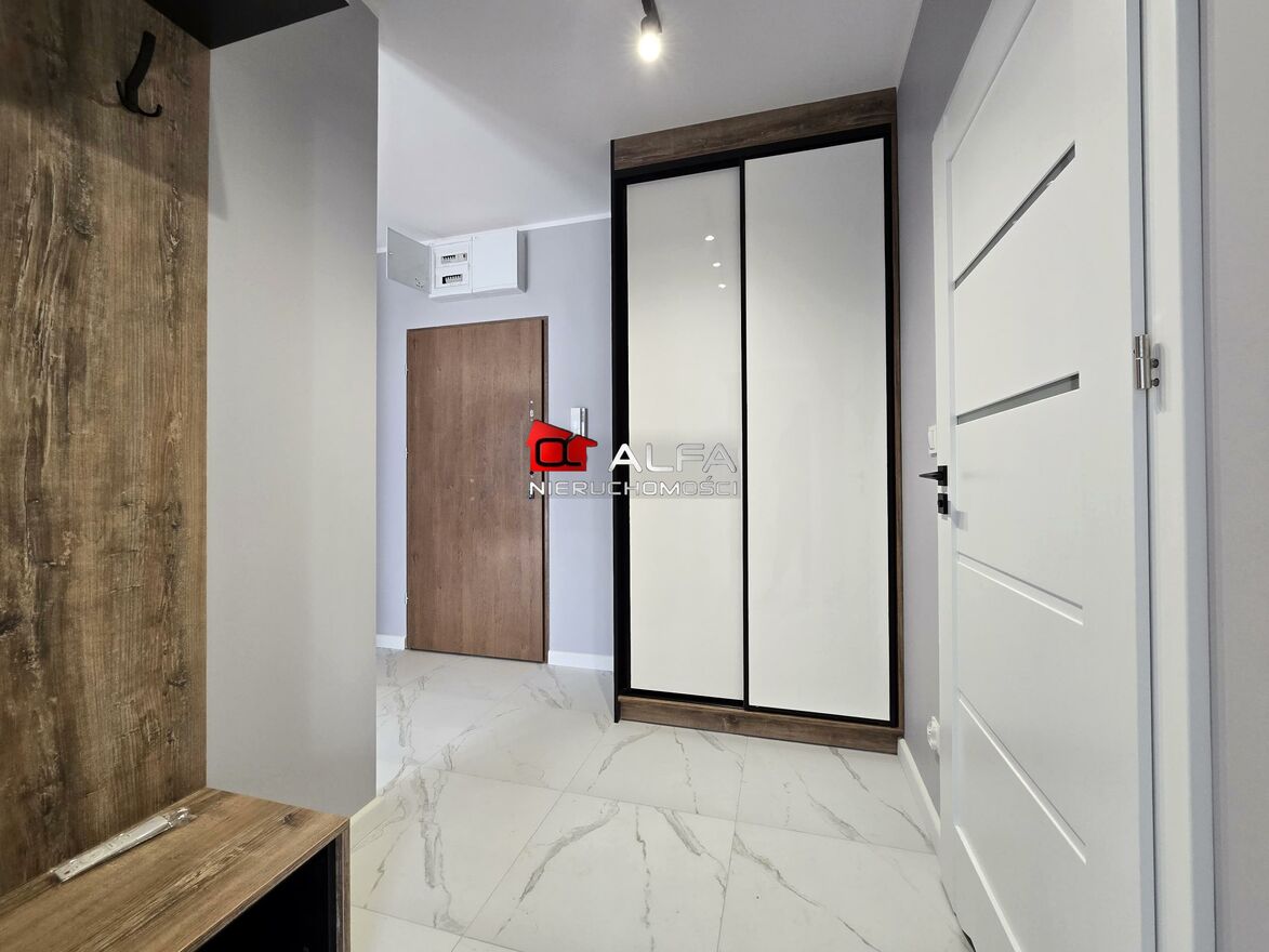 W cenie mieszkania mieszkania nowe meble kuchenne ze sprzętem AGD, w przedpokoju wygodna szafa.