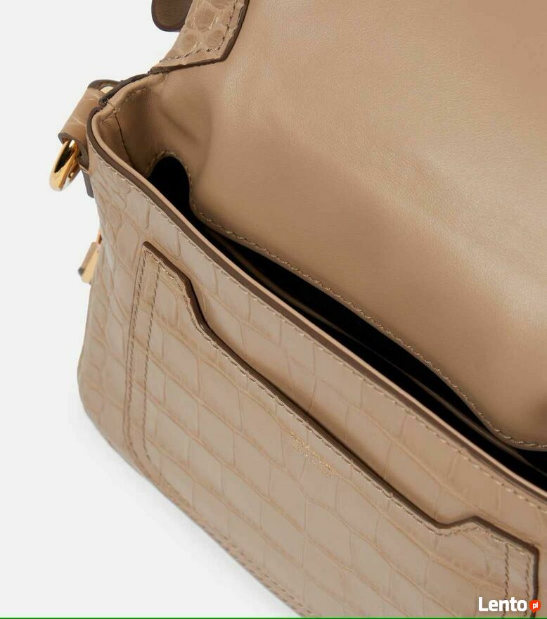 Tom Ford łączy funkcjonalność i modę z torbą na ramię Jennifer Mini. Wykonana ze skóry imitującej skórę krokodyla, ma duże, złote zamki, które powiększają komorę główną i zapewniają łatwy dostęp do jej górnej części.Zapięcie: zamek błyskawiczny u góry