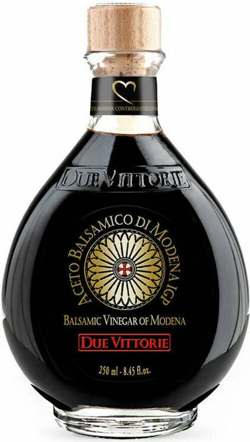Ocet balsamiczny z Modeny 250ml - Due Vittorie x 3 750 mlDue Vittorie Aceto Balsamico di Modena IGP to wyjątkowy produkt pochodzenia włoskiego, który wyróżnia się swoją naturalnie gęstą konsystencją oraz niezwykłą głębią smaku. Ten balsamiczny ocet stanowi doskonały dodatek do rozmaitych potraw, wzmacniając ich wyjątkowy charakter i aromat. Jest wolny od wzmacniaczy smaku i konserwantów, co gwarantuje jego naturalność i wysoką jakość.