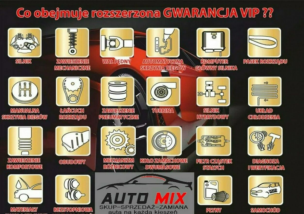 Gwarancja, którą państwo dostajecie ( 1 ROK NA PIŚMIE W CENIE AUTA ) zawiera takie podzespoły jak :