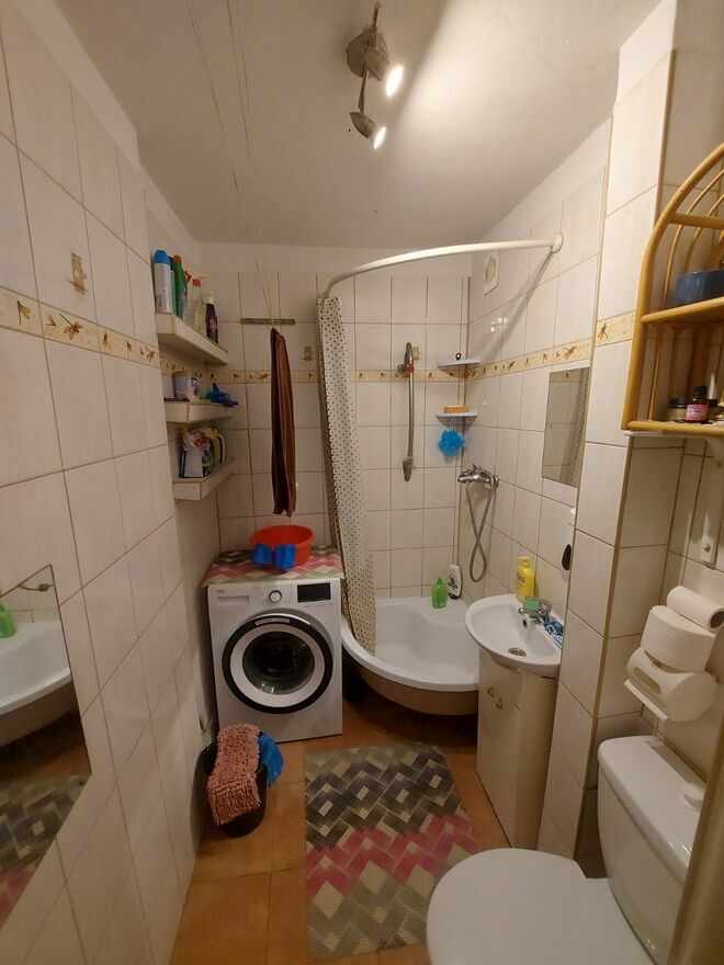 W mieszkaniu znajduje się piec kaflowy, a ciepła woda podłączona jest z sieci miejskiej. W całym bloku funkcjonuje ogrzewanie centralne miejskie – wystarczy podłączyć kaloryfery i rurki, co można wykonać niewielkim kosztem.