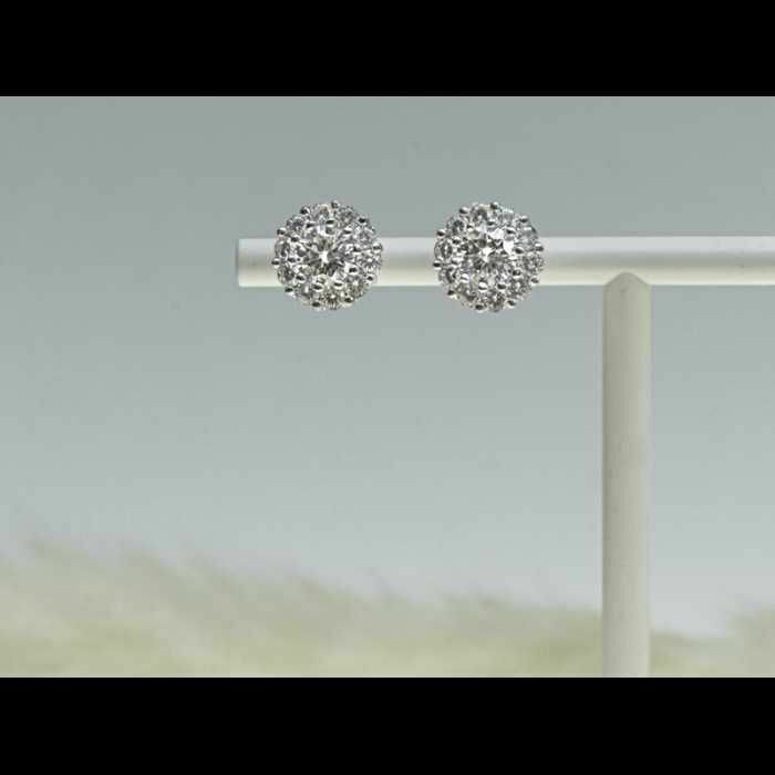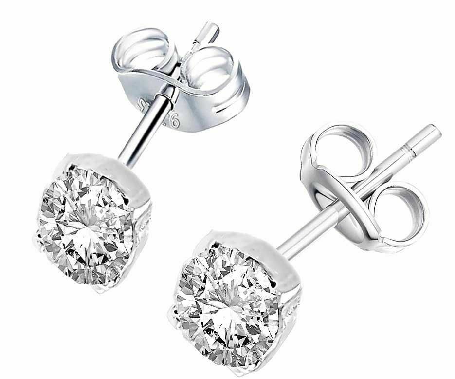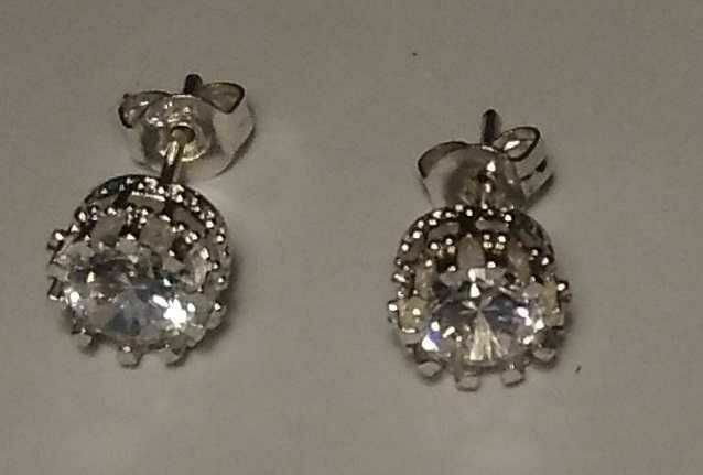 Srebrne kolczyki z cyrkoniami zapinane na sztyft.